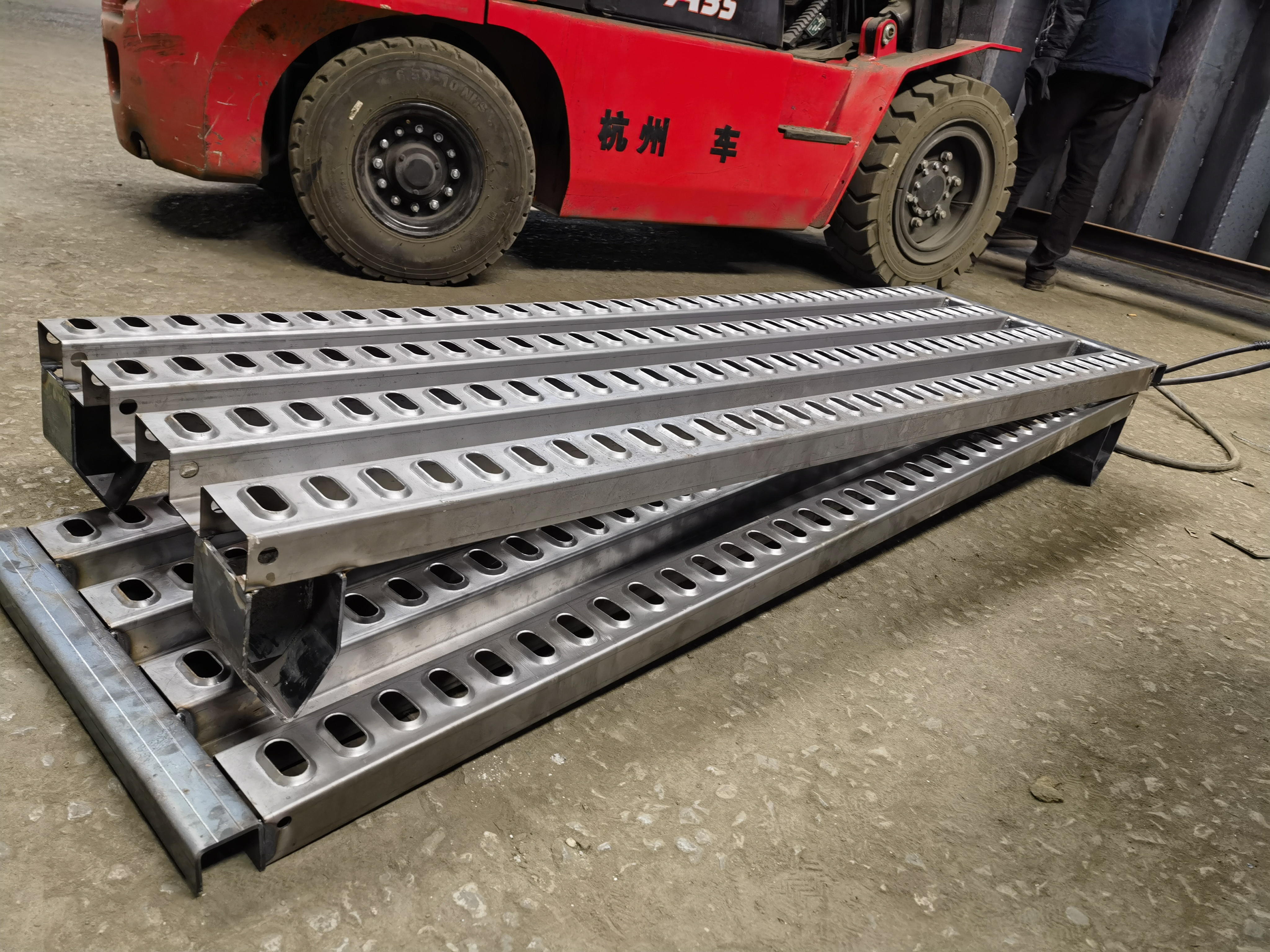 轎運(yùn)車爬梯,金屬跳板。 主要作用是幫助汽車從地面順利轉(zhuǎn)移到板車上層,彌補(bǔ)上層板與地面的高度差,非常堅(jiān)固耐用,防火防潮。